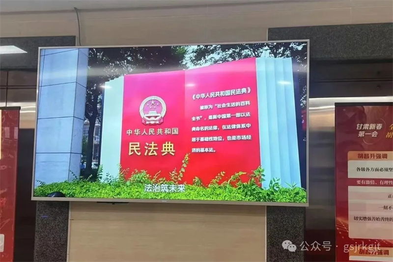 利用电子大屏幕循环播放《民法典》普法短视频、法律条文解读及案例动画,以通俗易懂的方式让民法知识“活”起来。