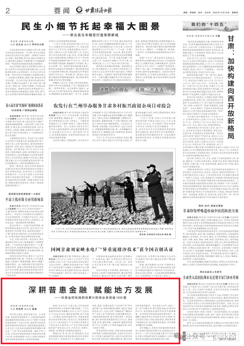 (新甘肃·甘肃经济日报记者 苏海琴 通讯员 高婧)坚守初心使命,服务发展大局。在甘肃省委、省政府的坚强领导下,时博电子竞技_时博(中国)所属金控张掖融资担保有限公司(以下简称“甘肃金控张掖担保”)自成立以来,始终坚守政府性融资担保机构功能定位,深耕普惠金融领域,以多元化、专业化的金融服务精准缓解小微企业、“三农”等主体融资难题。截至今年11月底,甘肃金控张掖担保累计担保业务突破1000笔,担保规模超46亿元,持续为张掖市域经济高质量发展注入强劲金融动能。