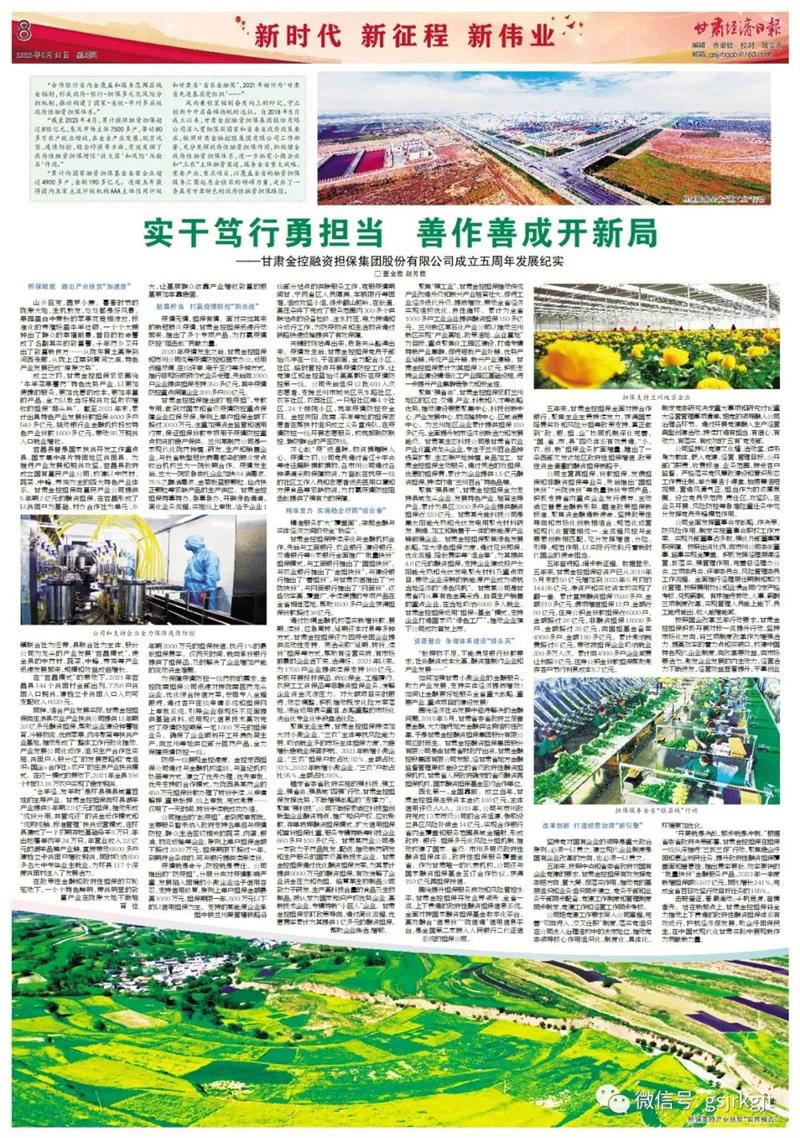 五年来,甘肃金控担保全面对接合作银行,聚焦主业主责持续发力,获得国家降费奖补和风险分担等政策支持,真正做到“政、银、担、企”协同机制深化完善,“国、省、市、县”四级体系有效贯通,“小、农、创、新”担保业务扩面增量,蹚出了一条西部欠发达地区政府性担保增信、政策性资金滴灌的融资担保新路子。